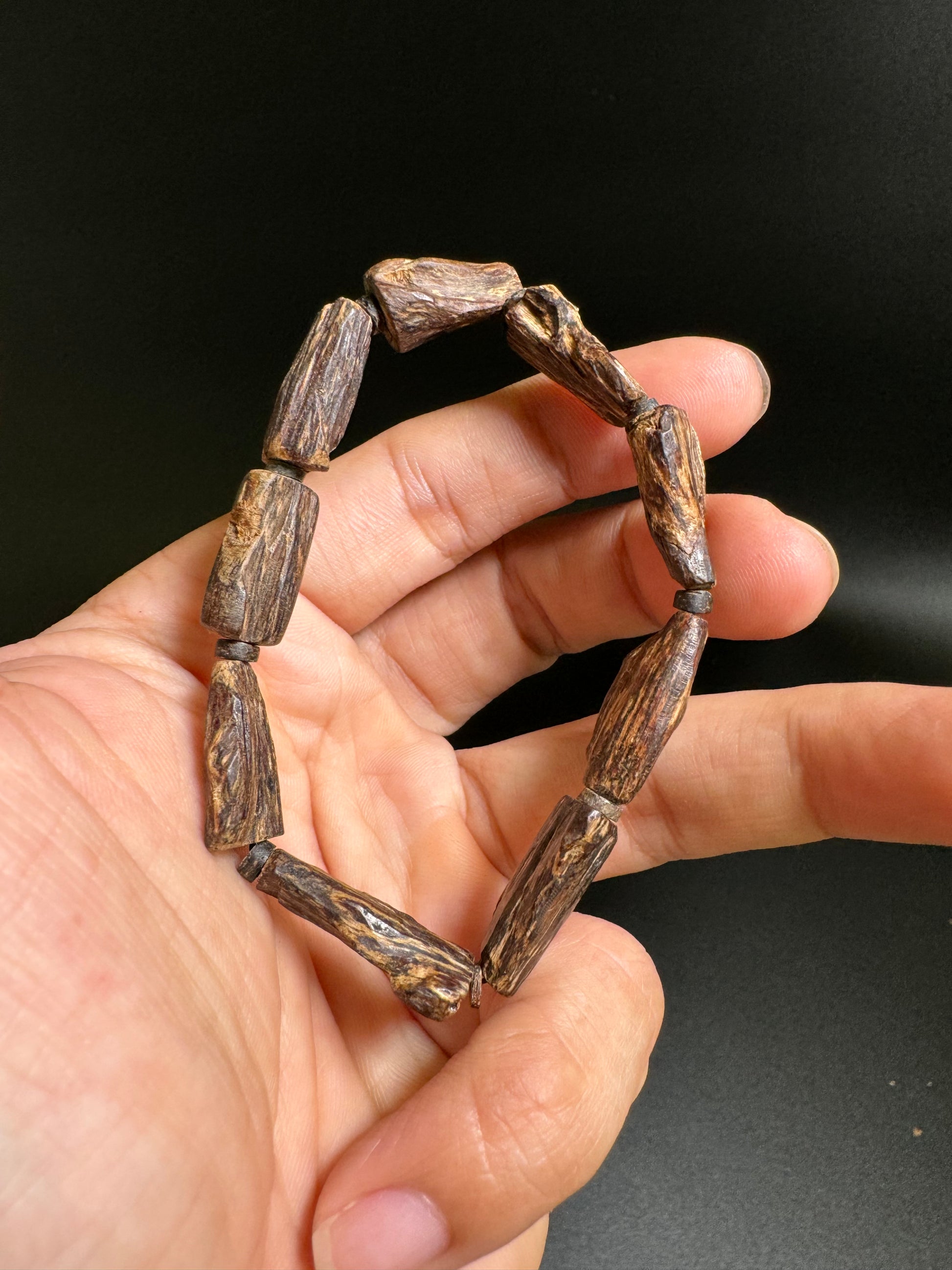 The bracelet is made from ancient Vietnamese Agarwood material, the product is extremely rare and almost no longer exists.