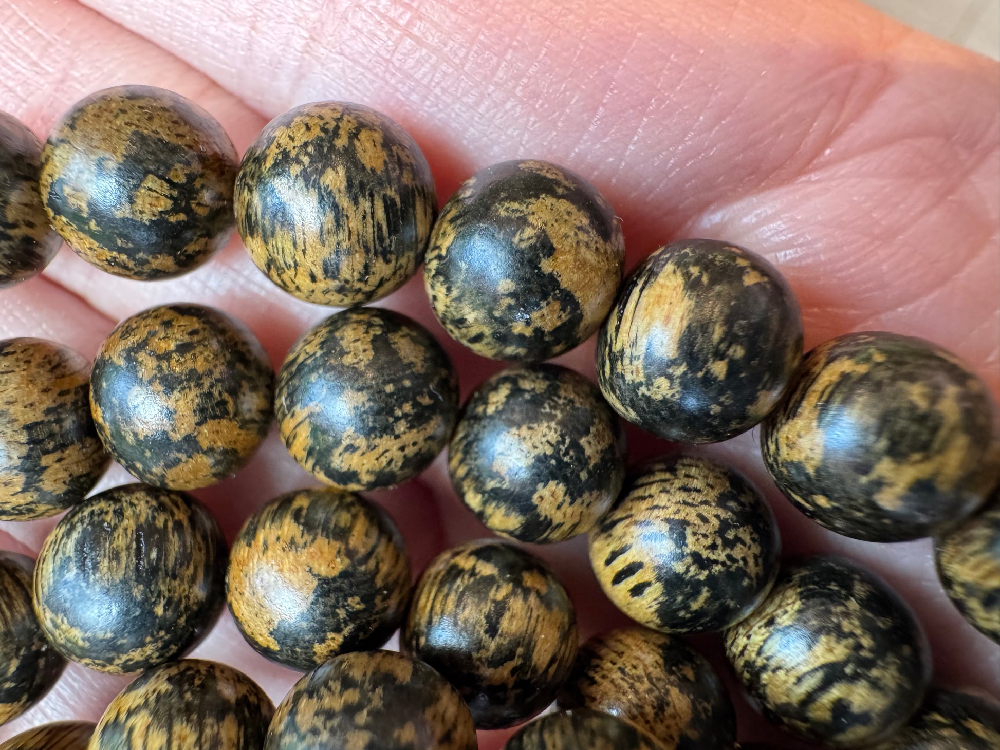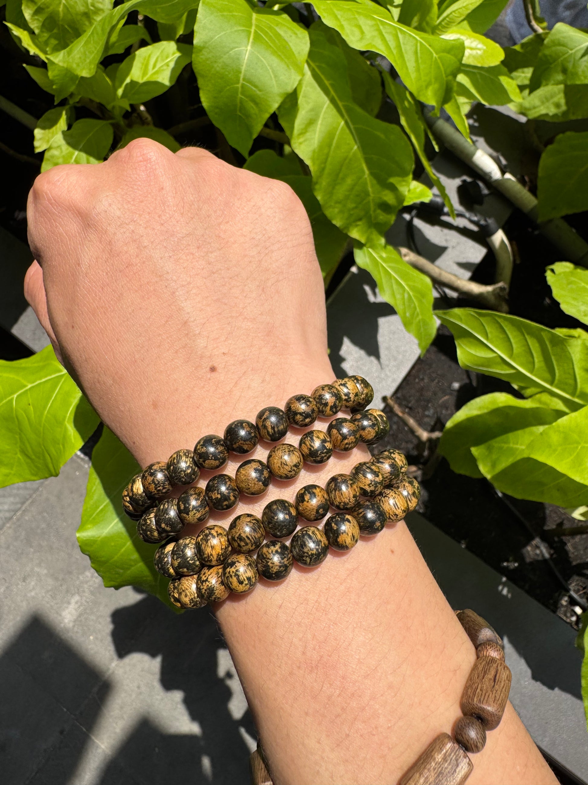 This Agarwood seed banana from the Malaysian forest is very rare. The wood grain of this Agarwood is mixed with yellow and black, very strange and beautiful when worn on the hand or around the neck. For those who love the scent and color of Agarwood and the color I call it like gold.