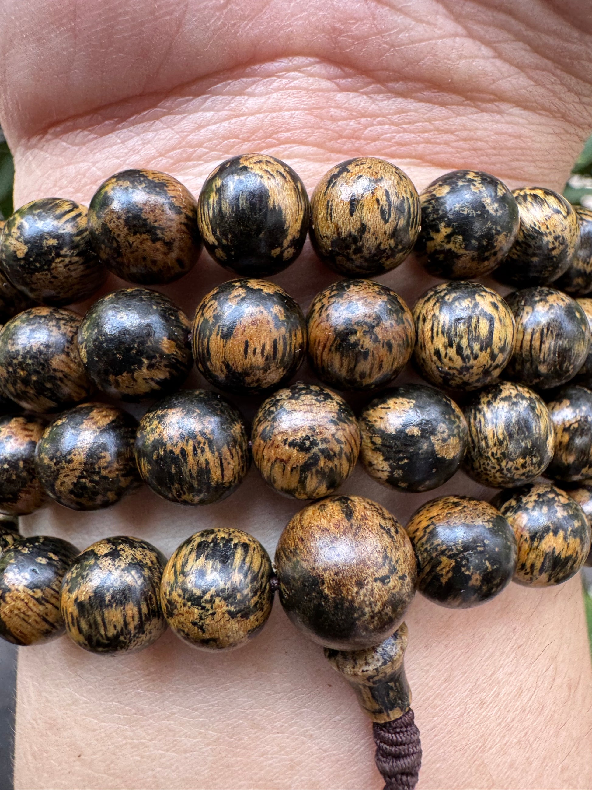 Agarwood 108 Bead Grain Mix Gold Color , Beautiful Grain Agarwood Old Like Gold , Size 10mm, Strong Aroma, only 1