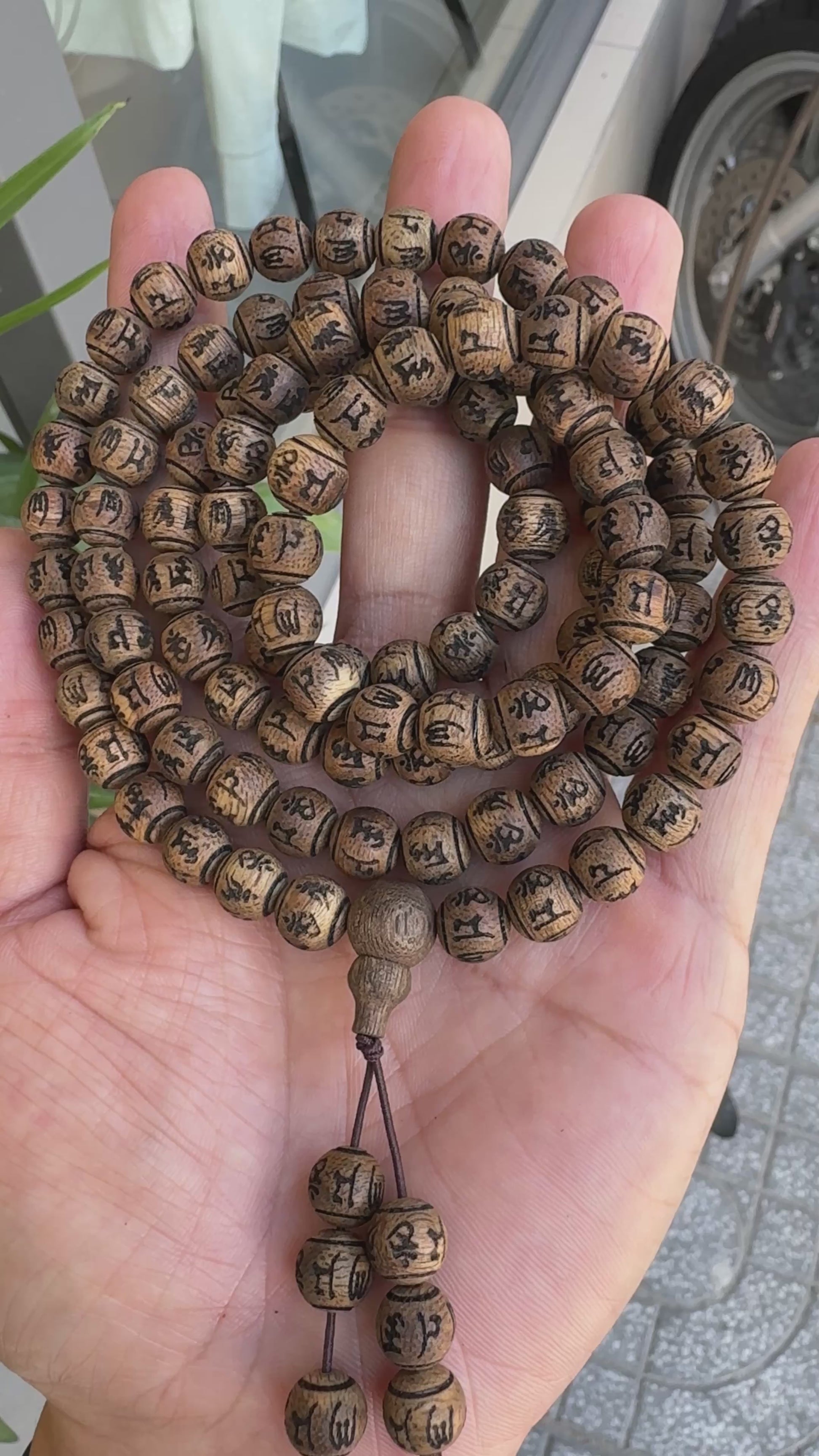 Natural Agarwood 108 Bead Omani sculpture, From Nha Trang Agarwood , Vietnamese Agarwood 108 Mala