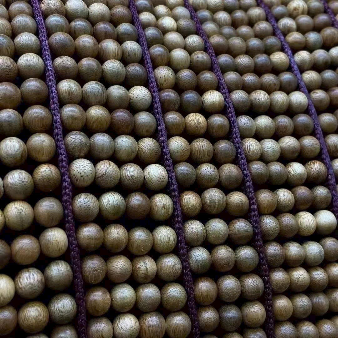 Square beads interspersed with round agarwood beads