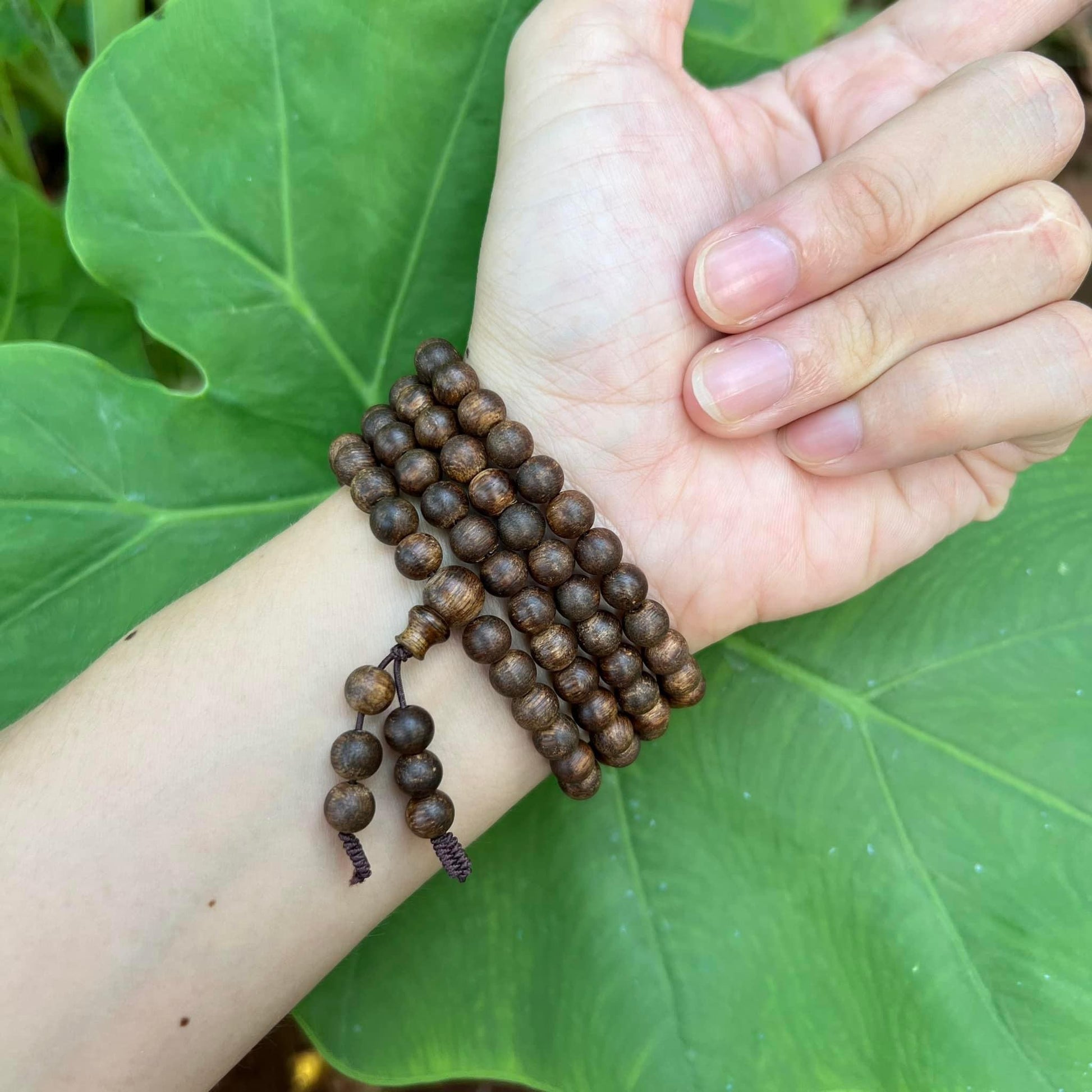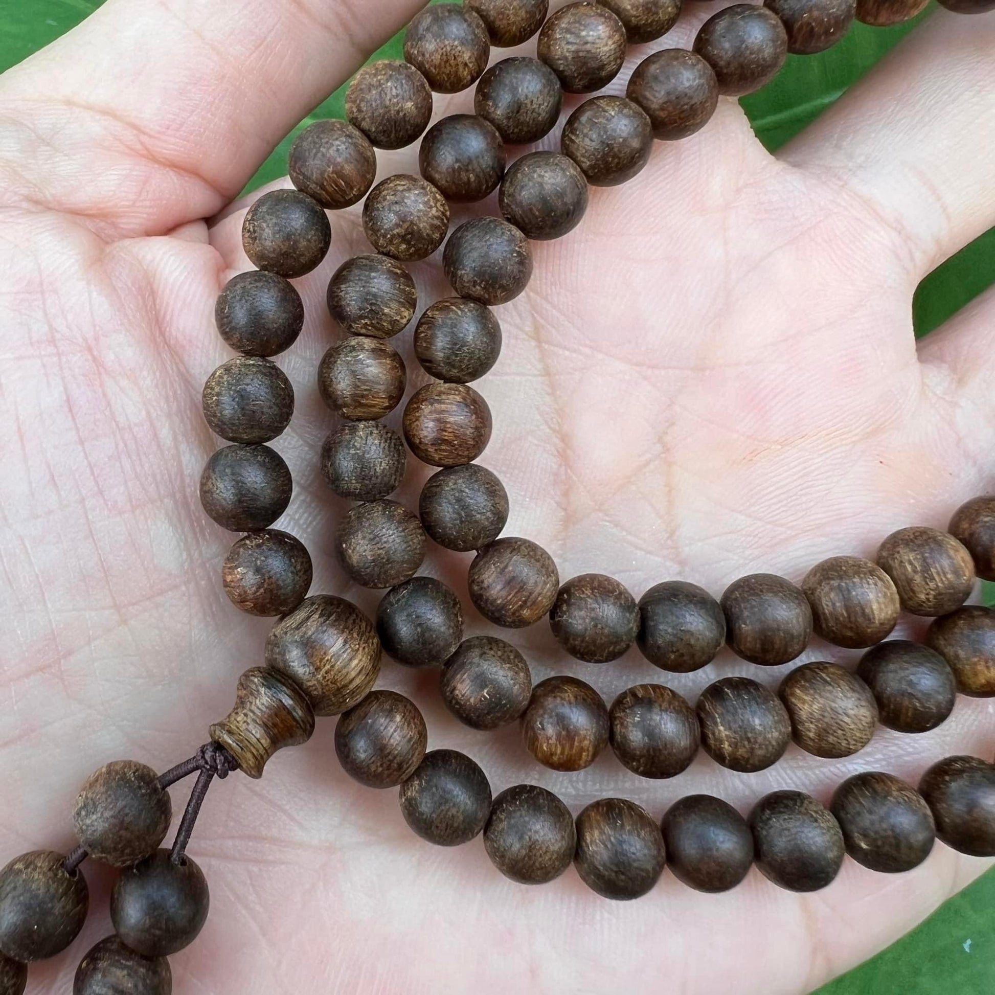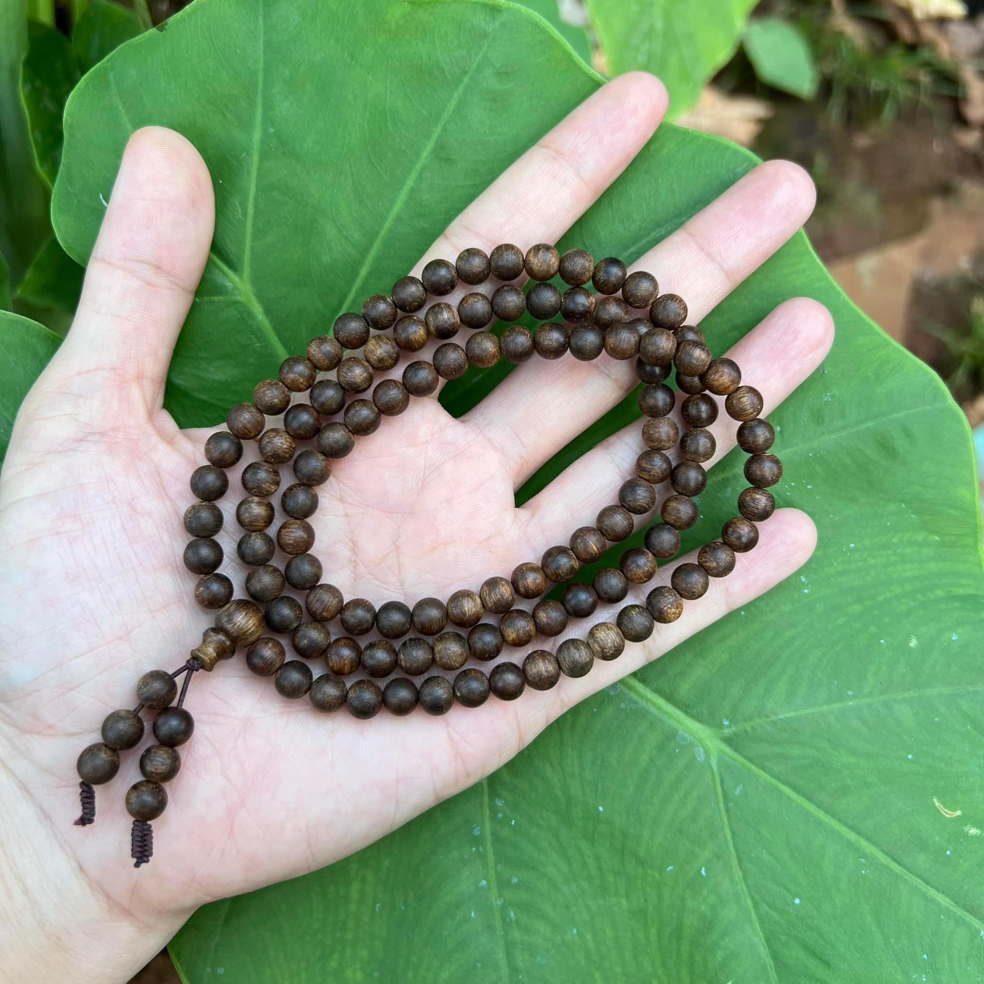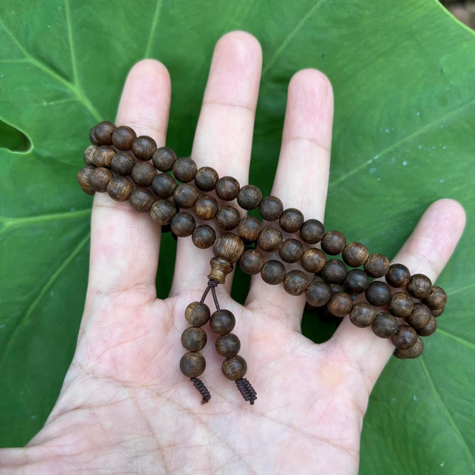 Wild Agarwood 108 Beads Dark Color , Indonesia Agarwood Mala , Mala Black Beads.
